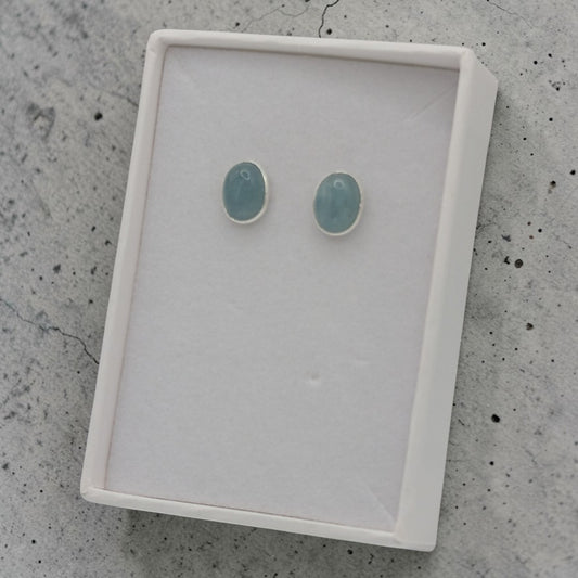 Sterling Silver Emira Aquamarine Oval Stud Earrings 0.4"