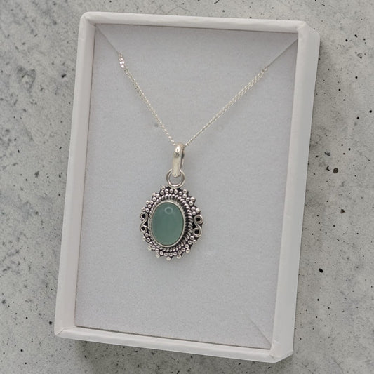 Sterling Silver Emira Aquamarine Ornate Oval Necklace