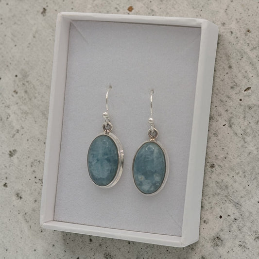 Sterling Silver Emira Aquamarine Oval Drop Earrings 1.3"