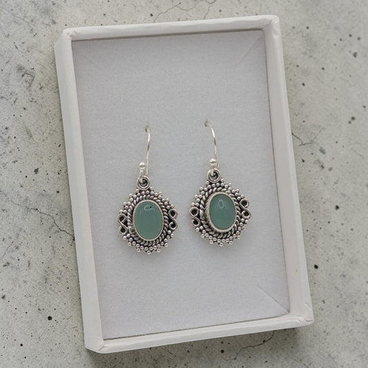 Sterling Silver Emira Ornate Aquamarine Oval Drop Earrings 1.3"