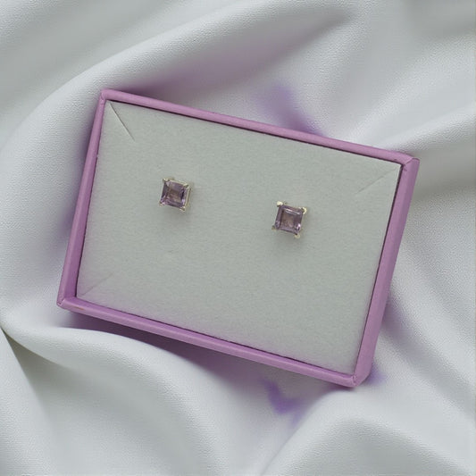 Sterling Silver Amethyst Square Stud Earrings 0.2"