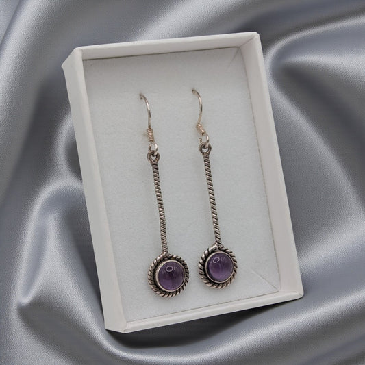 Sterling Silver Amethyst Drop Earrings 1.4"
