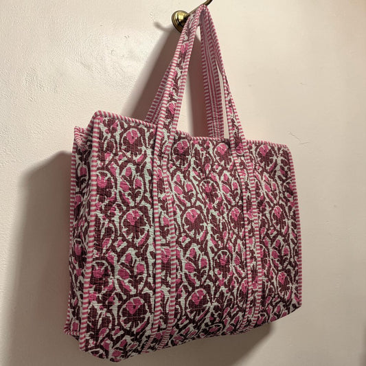 Dusky Rose Hand Block Printed Cotton Tote Bag