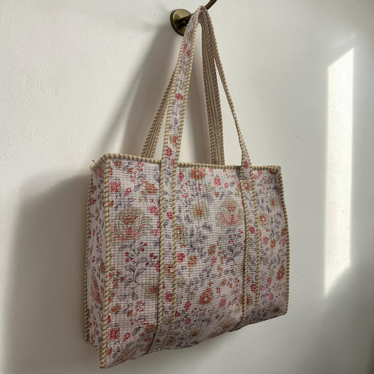Light Purple Floral Print Hand Block Printed Cotton Tote Bag