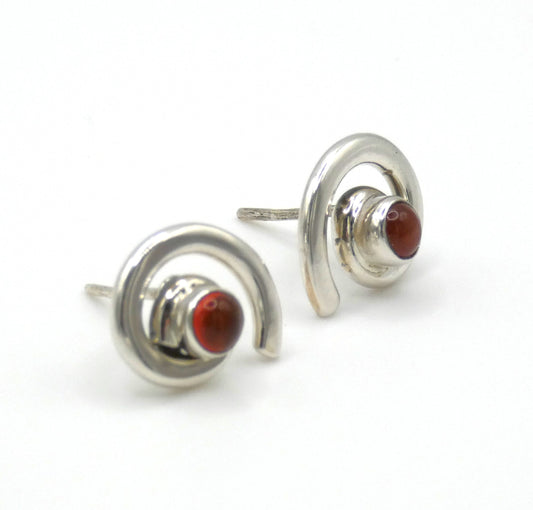 Sterling Silver Carnelian Swirl Stud Earrings With Centre Stone 0.6"