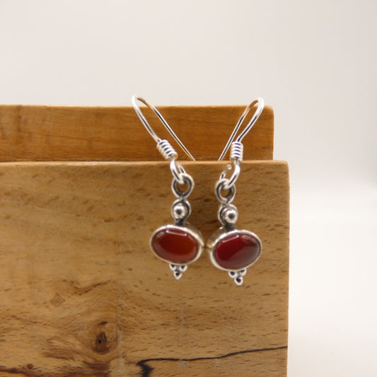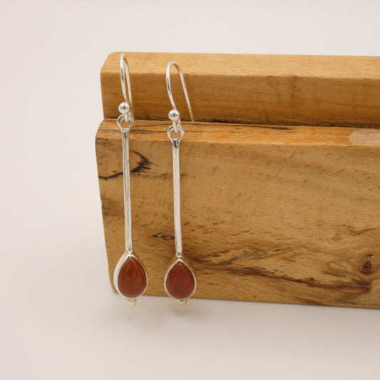 Sterling Silver Carnelian Drop Earrings 1.1"