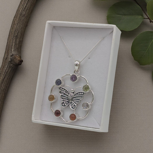 Sterling Silver Multi Stone Butterfly Chakra Necklace