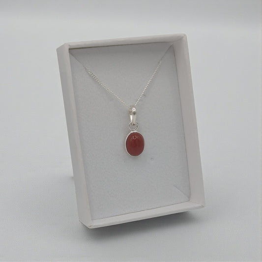 Sterling Silver Dainty Carnelian Oval Stone Necklace
