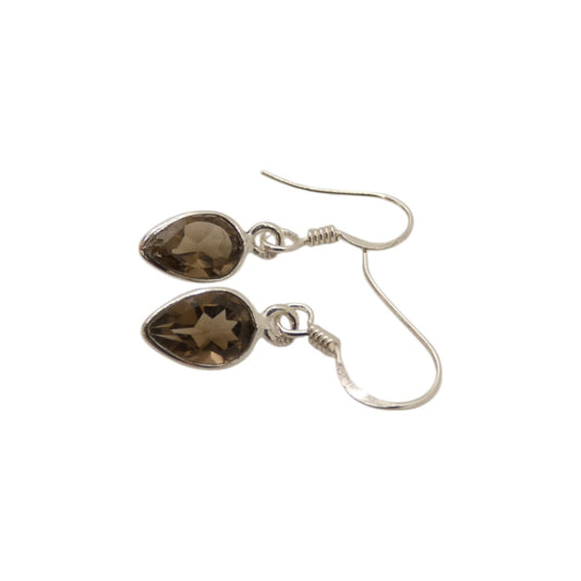 Sterling Silver Smoky Quartz Teardrop Earrings 1"