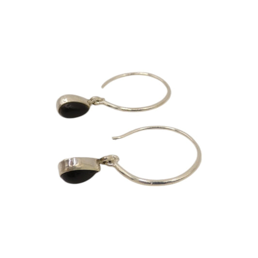 Sterling Silver Black Onyx Hoop Earrings With Drop Stone 0.75"