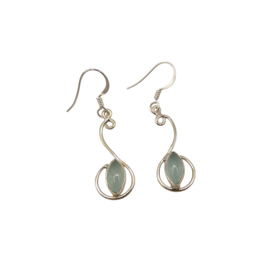 Sterling Silver Chalcedony Curved Drop Earrings 1.6"
