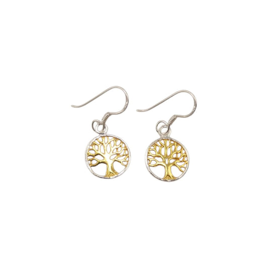 Gold And Silver Tree Of Life Drop Earrings 0.25"