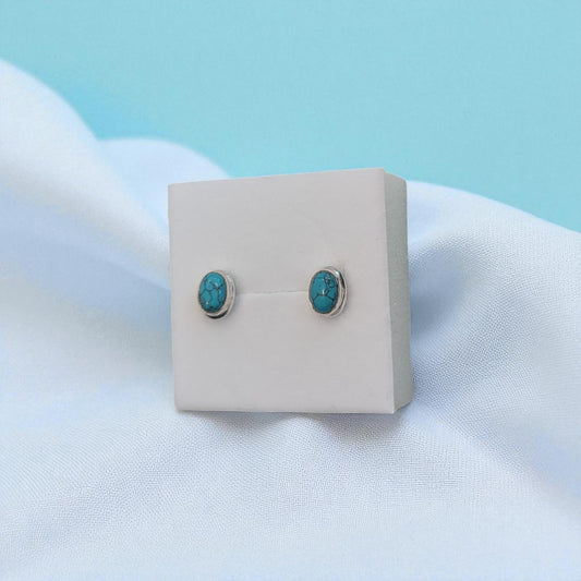 Sterling Silver Turquoise Oval Stud Earrings 0.25"