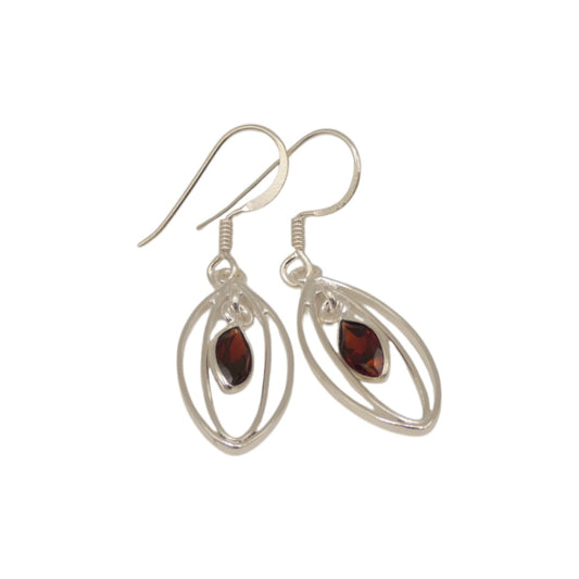Sterling Silver Garnet Double Loop Teardrop Earrings 1.6"