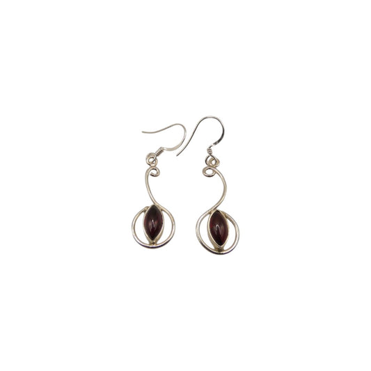 Sterling Silver Garnet Curved Drop Earrings 1.6"