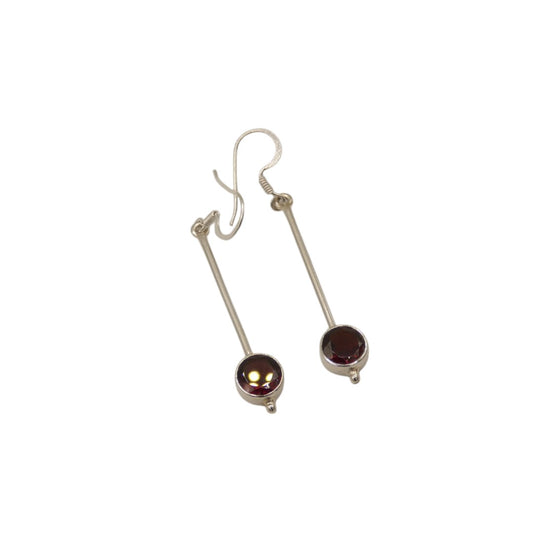 Sterling Silver Garnet Straight Drop Earrings With Round Stone 2"