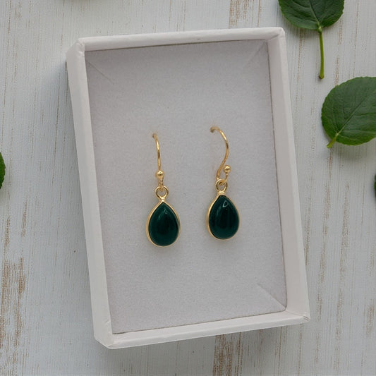 Emira Gold Plated Sterling Silver Green Onyx Tear Drop Earrings