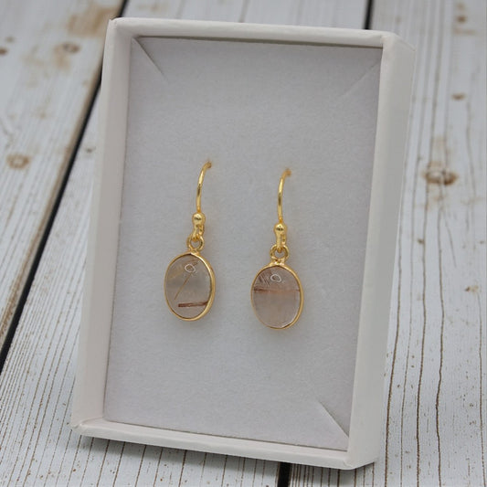 Gold Plated Sterling Silver Emira Golden Rutilated Quartz Oval Drop Earrings 1.1"
