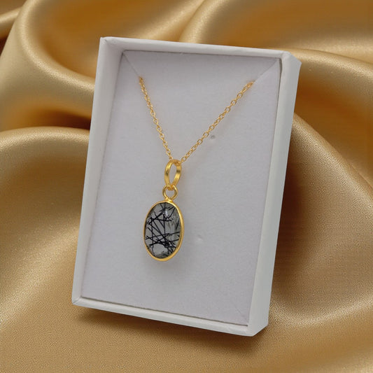 Emira Gold Plated Sterling Silver Black Rutilated Quartz Necklace With Oval Stone