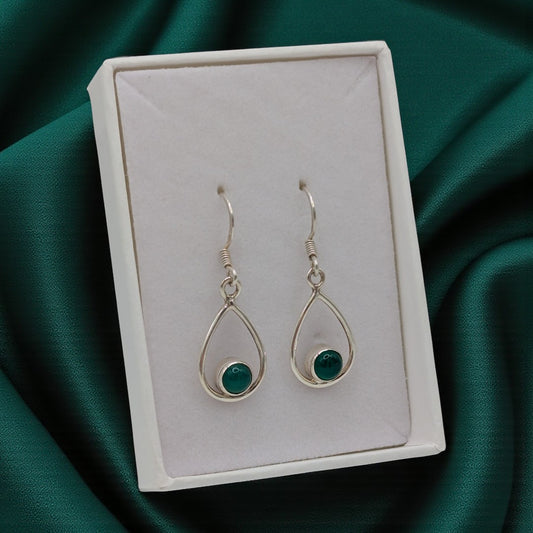 Sterling Silver Emira Green Onyx Open Teardrop Shape Earrings 1.4"
