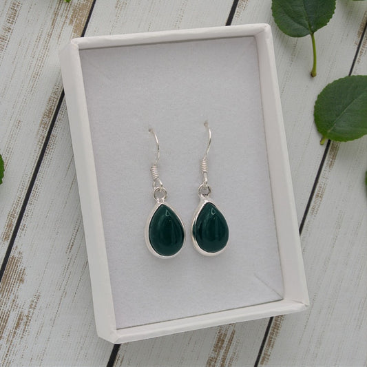 Sterling Silver Emira Green Onyx Teardrop Earrings 1.4"