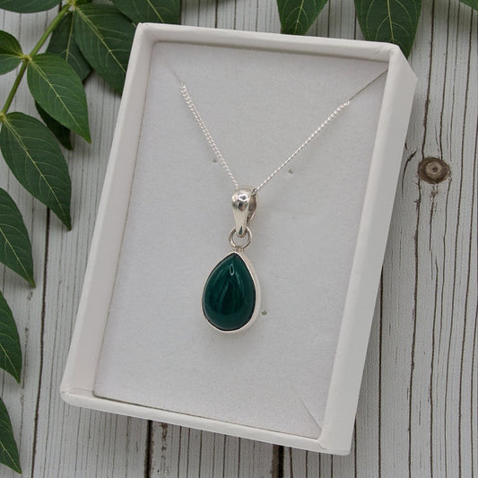 Sterling Silver Green Onyx Teardrop Stone Necklace