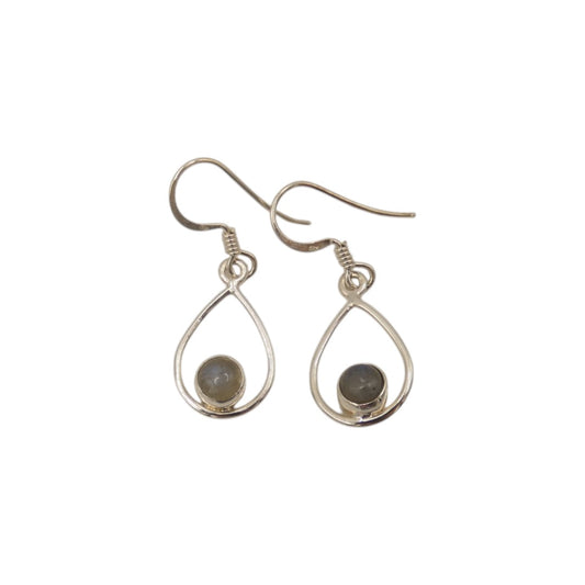 Sterling Silver Labradorite Open Teardrop Shape Earrings 1.4"