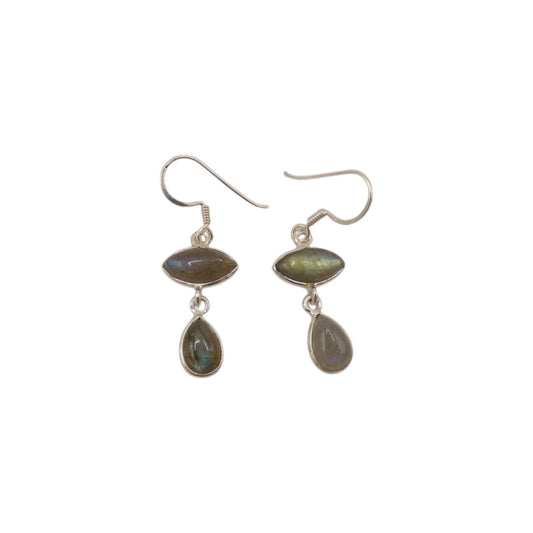 Sterling Silver Labradorite Double Stone Drop Earrings 1.5"