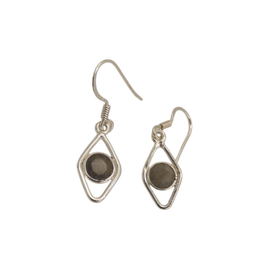 Sterling Silver Labradorite Open Diamond Shape Earrings 1.3"