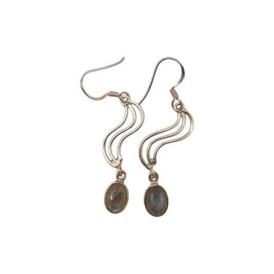 Sterling Silver Labradorite Swirl Drop Earrings With Oval Stone 1.9"