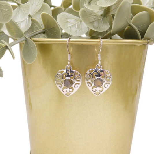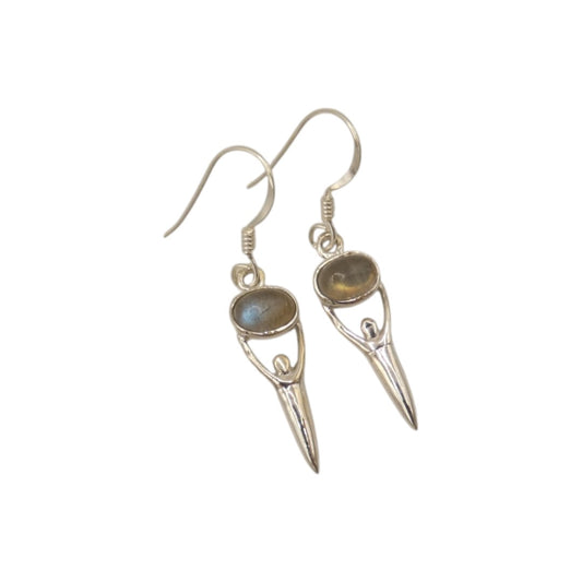 Sterling Silver Labradorite Love Spoon Design Drop Earrings 1.6"
