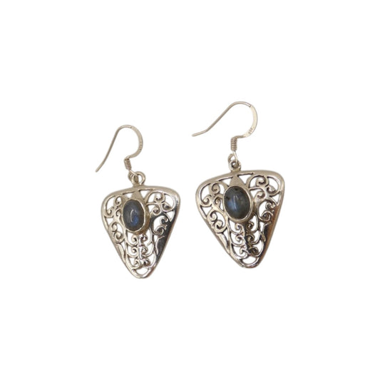 Sterling Silver Ornate Labradorite Drop Earrings 1.25"