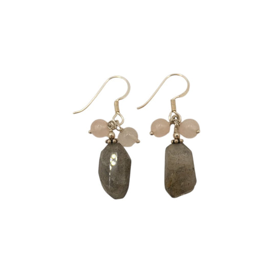 Sterling Silver Rough Cut Labradorite With Rose Quartz Beads Earrings 1.5"
