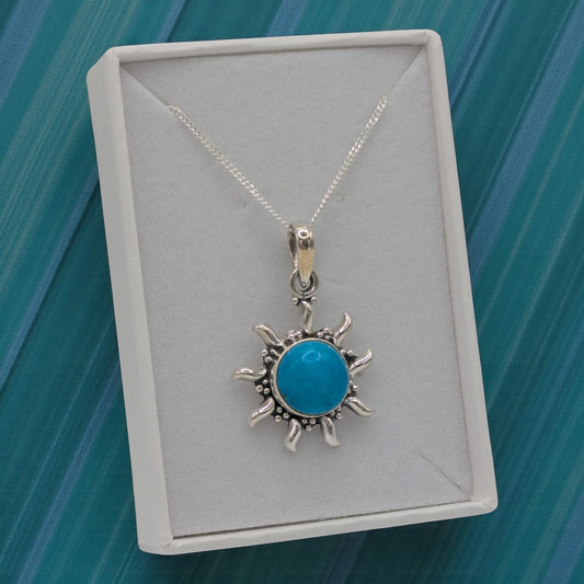 Sterling Silver Emira Turquoise Celestial Sun Necklace