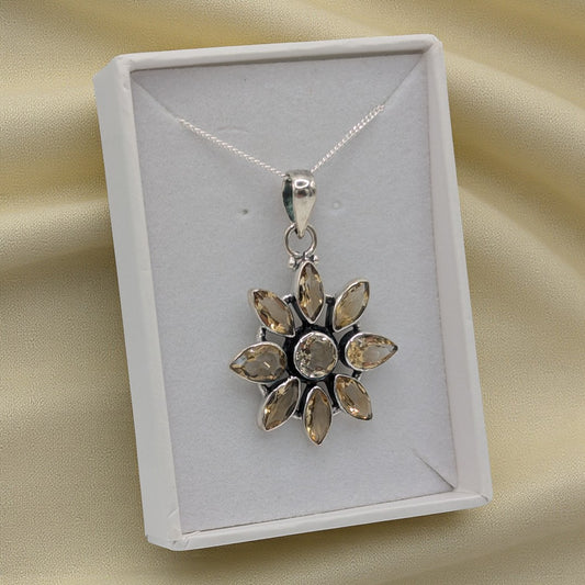 Sterling Silver Emira Citrine Flower Necklace