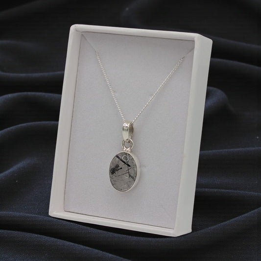 Sterling Silver Emira Black Rutilated Quartz Necklace With Oval Stone