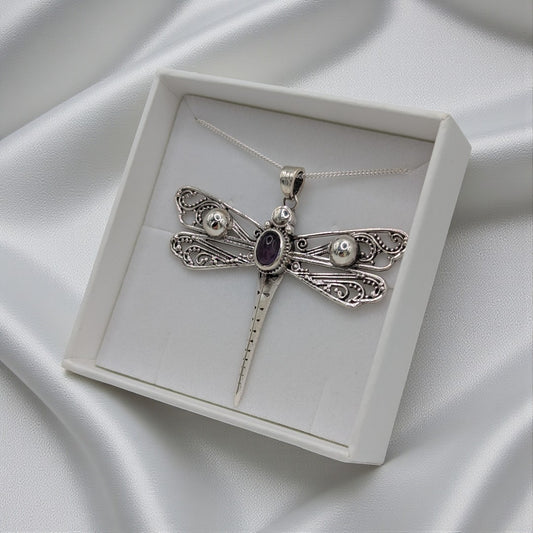Sterling Silver Emira Amethyst Large Dragonfly Necklace