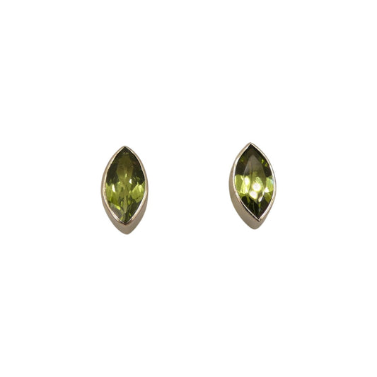 Sterling Silver Peridot Diamond Shape Stud Earrings 0.4"