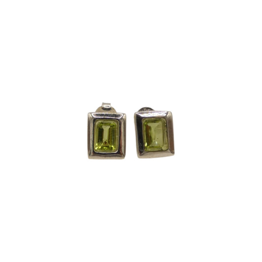 Sterling Silver Peridot Rectangular Stud Earrings 0.4"