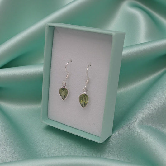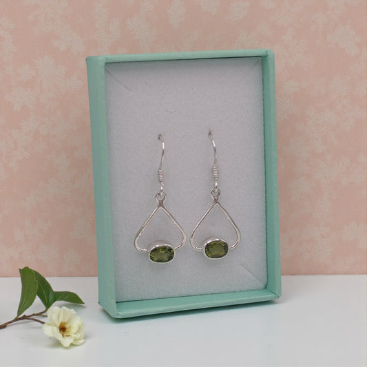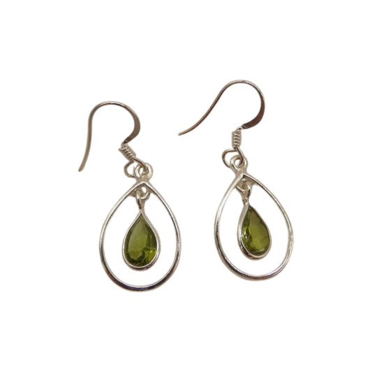 Sterling Silver Peridot Teardrop Earrings 1.1"