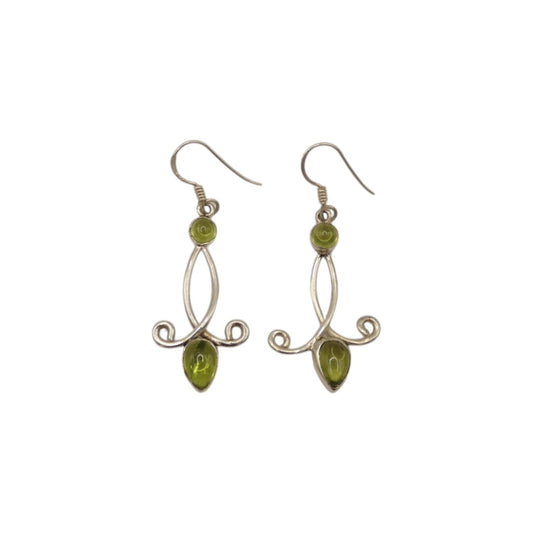 Sterling Silver Peridot Semi Swirl Drop Earrings 1.6"