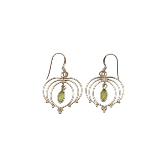 Sterling Silver Peridot Double Loop Teardrop Earrings 1.6"