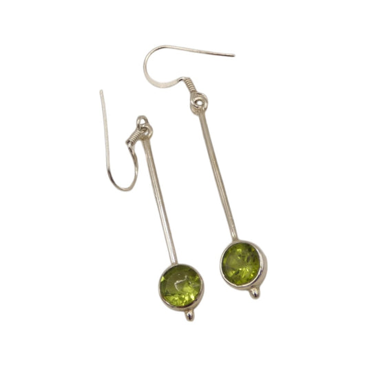 Sterling Silver Peridot Straight Drop Earrings With A Round Stone 2"