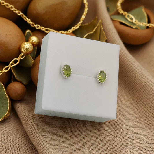 Sterling Silver Peridot Oval Stud Earrings 0.4"