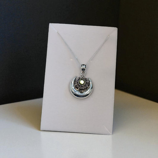 Sterling Silver Peridot Moon & Sun Stone Necklace