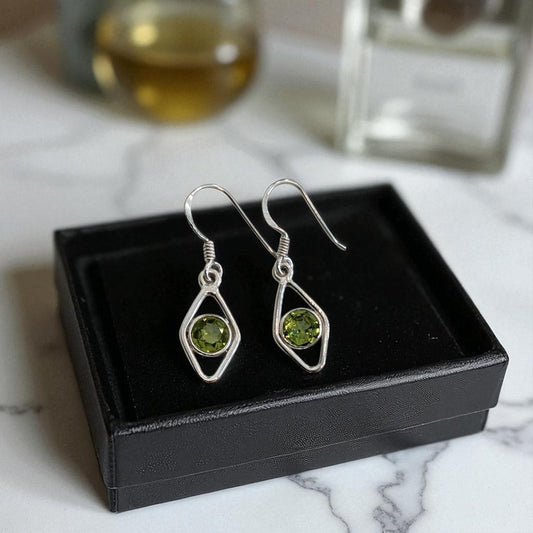 Sterling Silver Peridot Diamond Shape Drop Earrings 1.1"