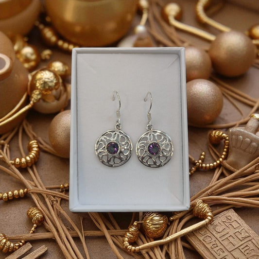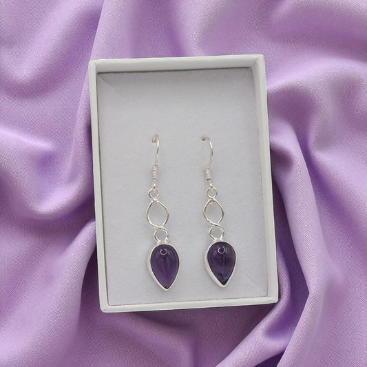 Sterling Silver Amethyst Love Spoon Design Drop Earrings 1.6"