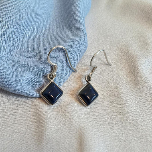 Sterling Silver Lapis Lazuli Diamond Shape Drop Earrings 1.1"