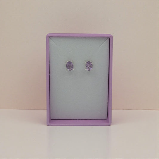 Sterling Silver Amethyst Oval Stud Earrings 0.3"