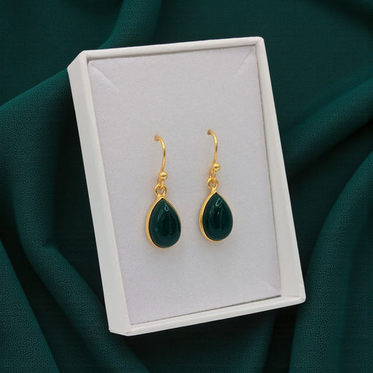 Emira Gold Plated Sterling Silver Green Onyx Tear Drop Earrings